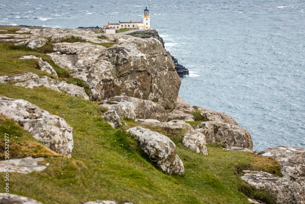 Neist Point Lighthouse on the Isle of Skye in Scotland.