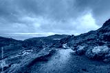 Old Man of Storr on the Isle of Skye in Scotland. Mountain landscape with foggy clouds.
