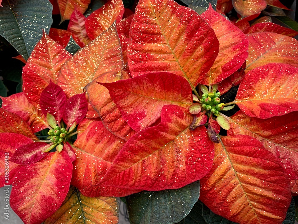 Orange poinsettia leaves