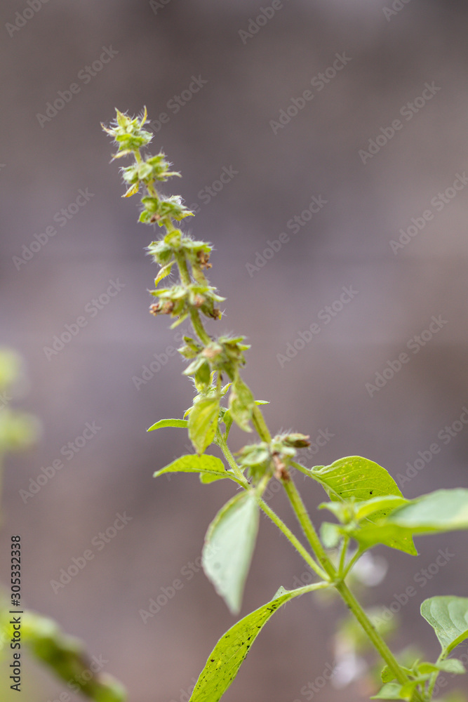 Close up Lemon basil or Hoary basil plant in a garden.(Ocimum basilicum)