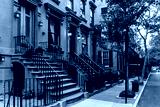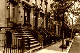 Brownstone facades & row houses at sunset in an iconic neighborhood of Brooklyn Heights in New York City