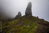 Old Man of Storr on the Isle of Skye in Scotland. Mountain landscape with foggy clouds.