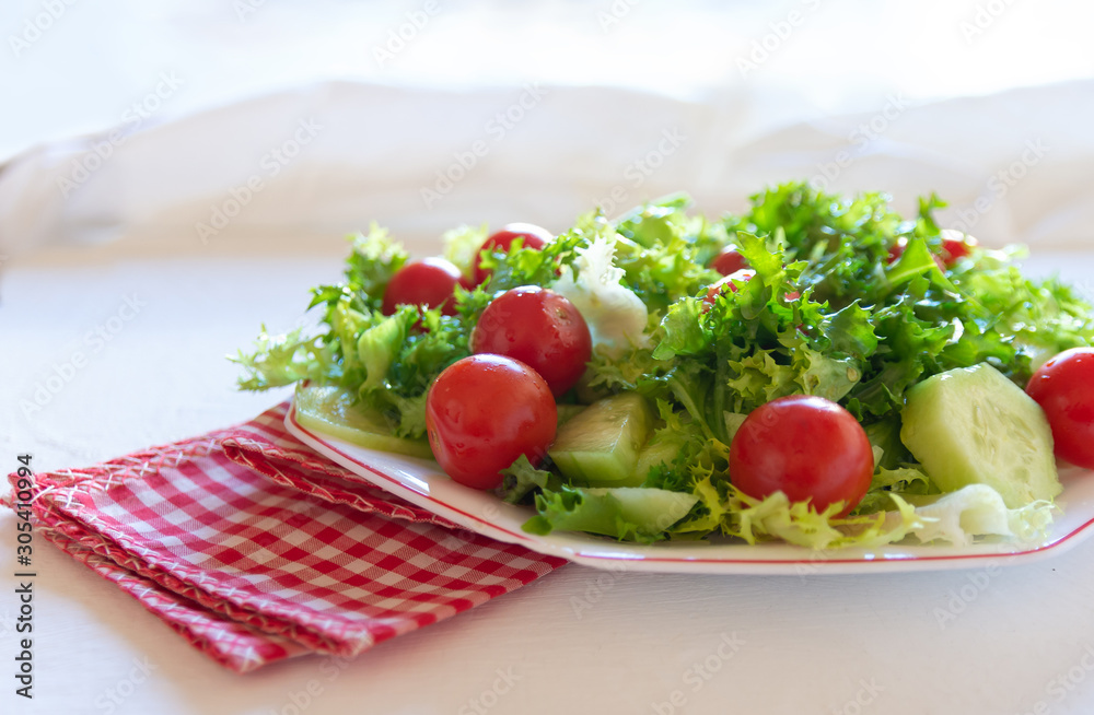 Escarole salad and cherry tomatoes closeup view