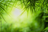 Closeup beautiful view of nature green bamboo leaf on greenery blurred background with sunlight and copy space. It is use for natural ecology summer background and fresh wallpaper concept.