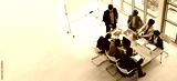 Top view of group of multiethnic busy people working in an office, Aerial view with businessman and businesswoman sitting around a conference table with blank copy space, Business meeting concept