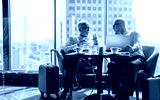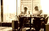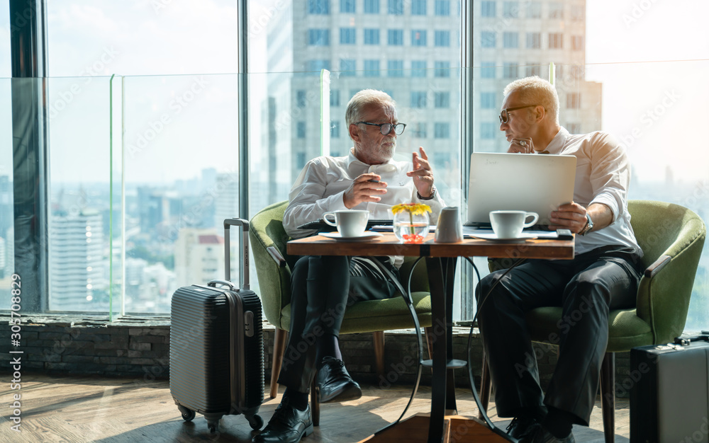 Meeting and discussion concept.business people communicating in office.Mature businessman discuss information with a colleague in a modern business lounge high up in an office tower.