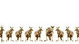 Male kangaroos in Christmas hats isolated on white background. Copy space.