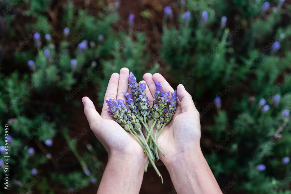 Woman hands filled up with fresh lavender flower