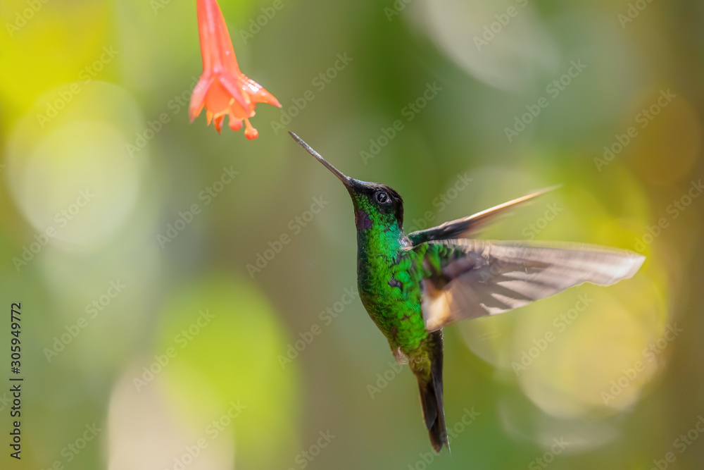 Buff-winged Starfrontlet - Coeligena lutetiae, beautiful green hummingbird from Andean slopes of South America, Yanacocha, Ecuador.