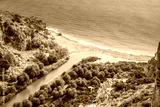 Panorama of Preveli beach at Libyan sea, river and palm forest, southern Crete , Greece