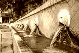 Old venetian fountain with lion heads springs pure drinking water in Spili, Crete island, Greece