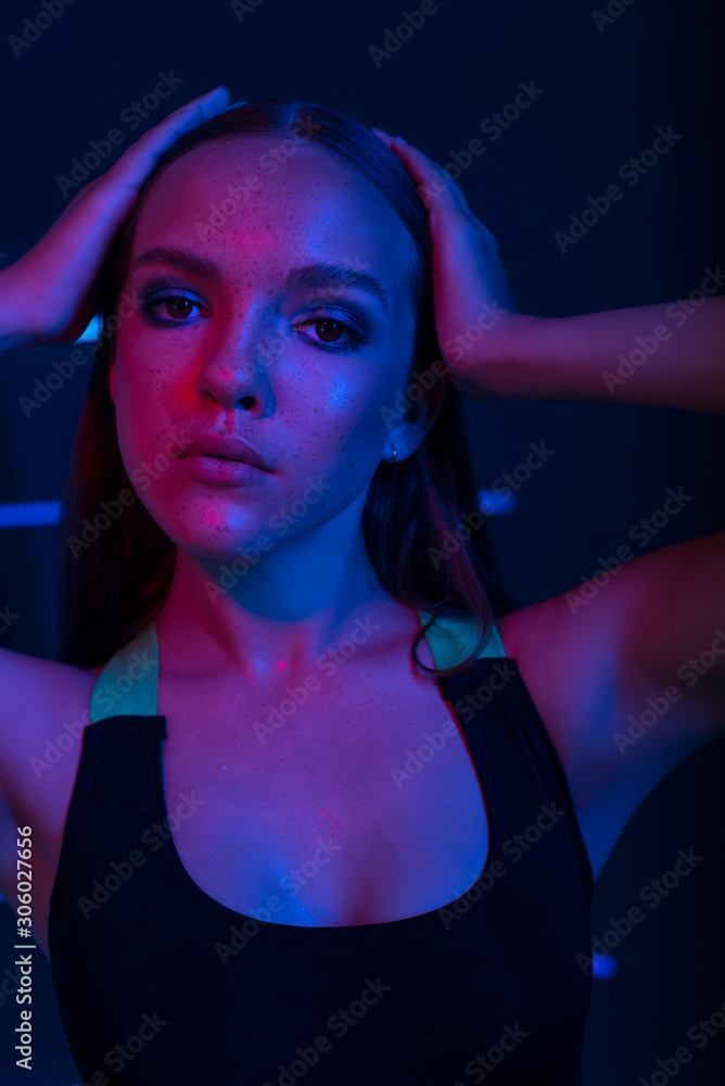 Studio portrait of a beautiful attractive athletic slim gir.