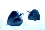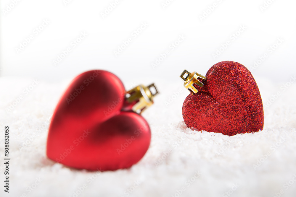 Red heart in snow. Valentine pink shape of heart. The spirit of Christmas. Christmas traditions. Winter mood. Valentine's day. Love and feelings