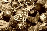 Christmas tree decoration in vintage style, new year retro toys, winter holidays and celebrations concept, selective focus