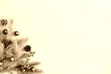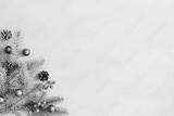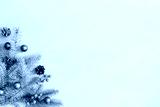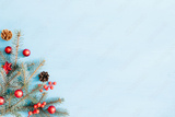 Christmas decoration on a blue wooden background, flat lay. Space for text