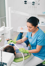 Pediatric dentist doing Inhalation Sedation to a child while teeth treatment at dental clinic. Sedation Dentistry