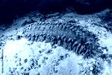 A large Sea Cucumber feeding on the sand of a tropical coral reef in Thailand