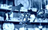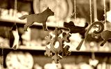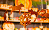 Christmas Tree Wooden Toys and Decorations on Christmas Market in Winter Riga, Latvia. Advent Fair Decoration, and Stalls with Crafts Items in Bazaar. Street Xmas and holiday fair in European city.