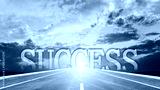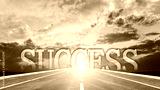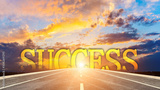 Write "success" on the empty asphalt road straight ahead. Creative drawings of successful concepts.