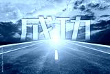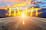 Write "success" on the empty asphalt road straight ahead. Creative drawings of successful concepts.