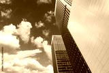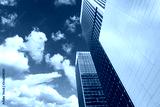 The modern city architecture is photographed under the blue sky