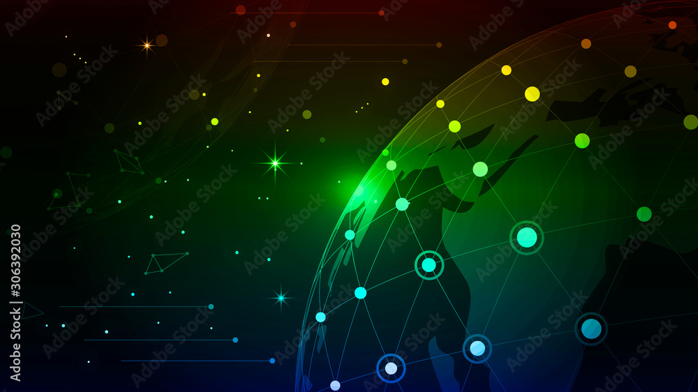 Dot and line link, digital earth to build the global Internet technology concept creative background