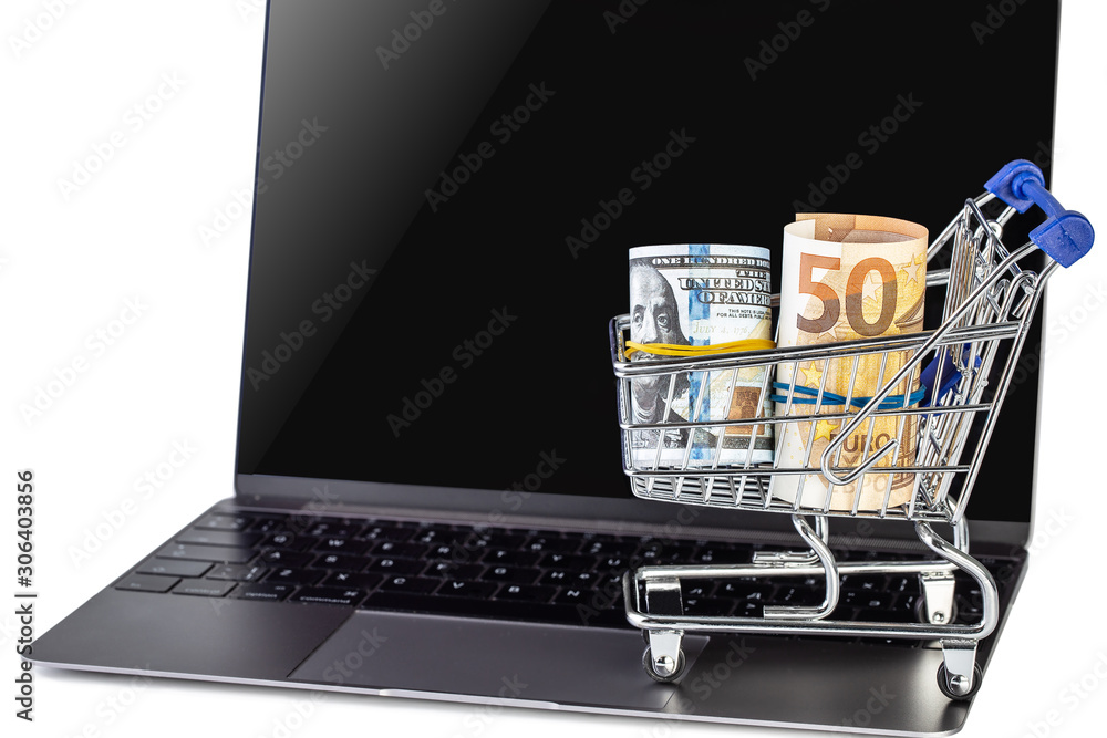 Shopping cart and laptop