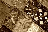 Elements from the colorful hand stiched patterns in a patchwork quilt