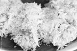 Thai dessert for rituals and eating. Flour stuffed with sweet coconut, and grated coconut topping on plate.