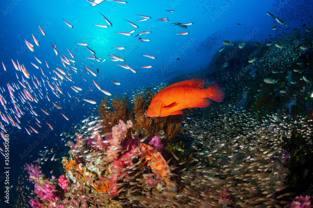Colorful Coral Grouper on a tropical coral reef in the Andaman Sea