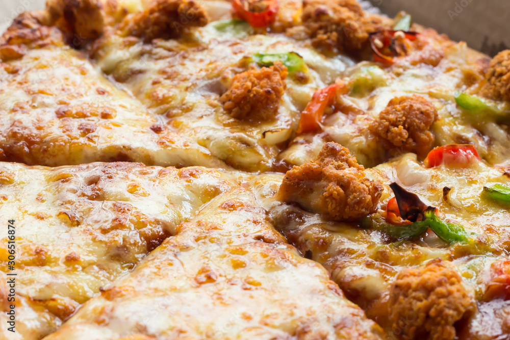 Hot cheese and chicken pizza, Italian food
