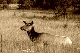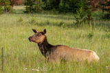 Elk laying in green grass meadow