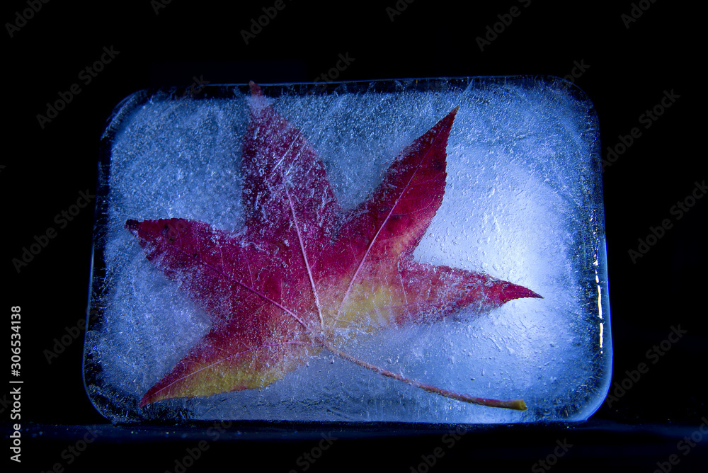 Foglia all'interno di un blocco di ghiaccio