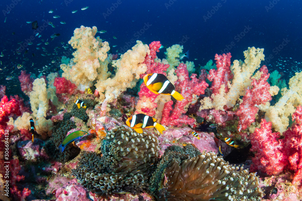 Banded Clownfish on a colorful tropical coral reef (Richelieu Rock)