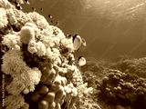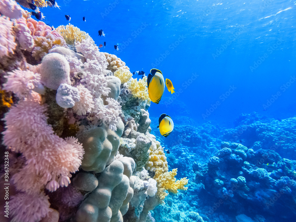 colorful corals and exotic fishes at the bottom of the Red sea. beautiful natural summer background