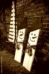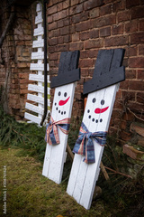 Outdoor Christmas decorations, snowman and Christmas tree
