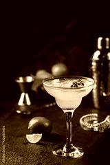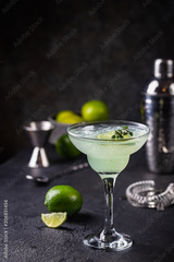margarita cocktail with lime in a glass on dark background