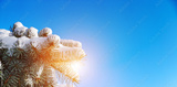 Fir Branch With Snow On a Background Of Blue Sky