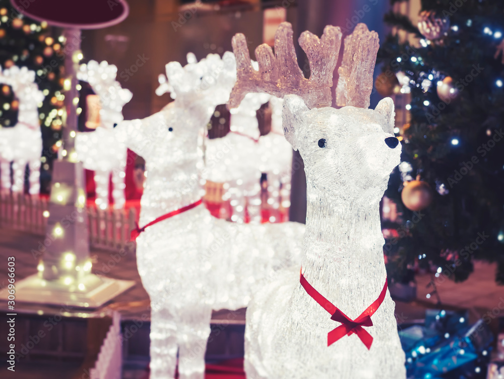 Christmas decoration Reindeer lighting with Xmas tree Festival holiday Background