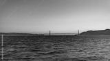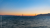 Gold sunset over San Francisco Bay with full moon and birds