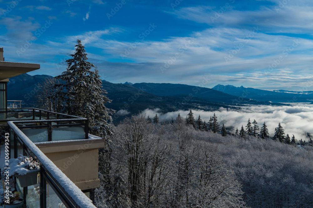 Wintery cloud inversion viewed from UniverCity on Burnaby Mountain