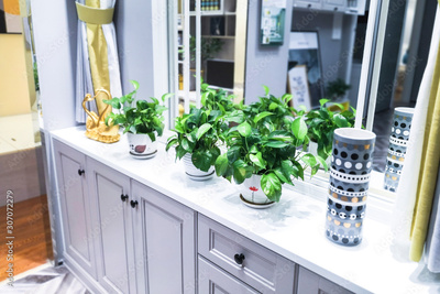 A green potted plant at an indoor window