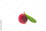 A bayberry with a green leaf on a white background