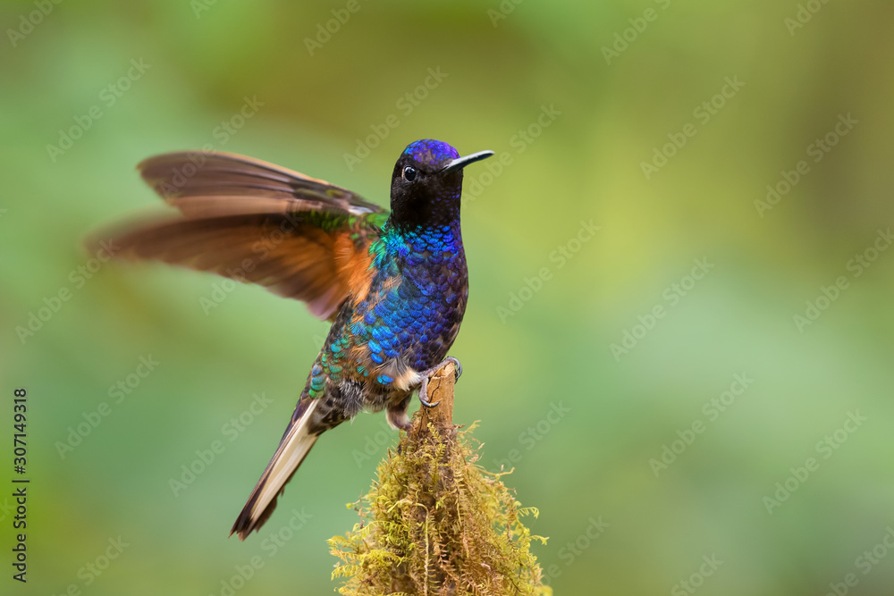 Velvet-purple Coronet - Boissonneaua jardini, beautiful colored hummingbird from western Andean slopes of South America, Amagusa, Ecuador.