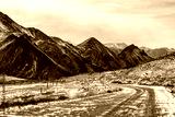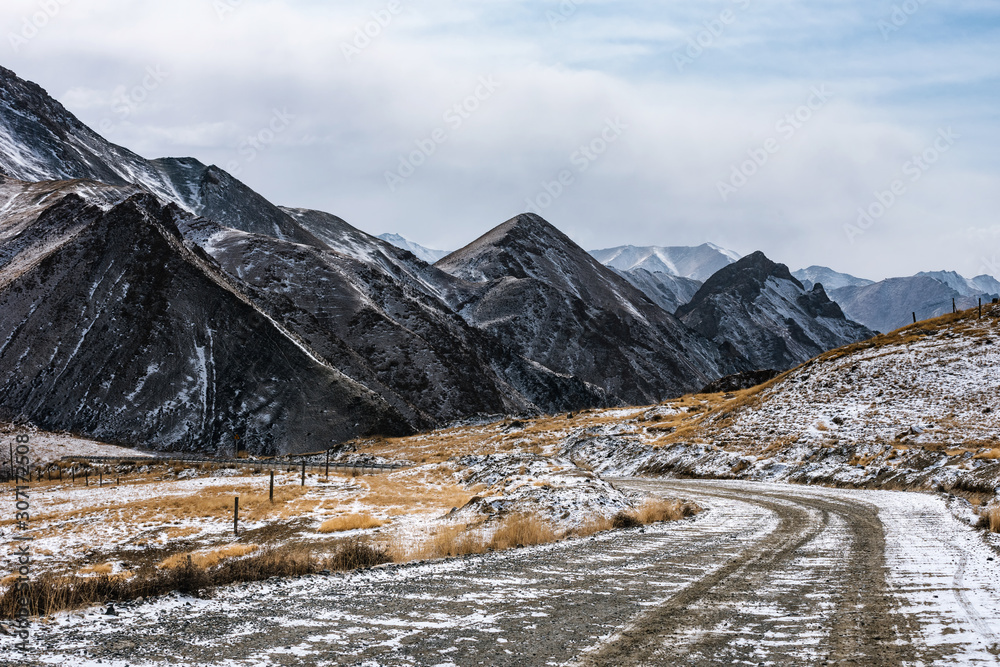 the gravel road on the snow mountain