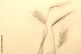 Ears of rye, wheat on pastel beige background. Flat lay, top view minimal organic healthy raw food concept.