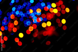 Colorful circles bokeh festive glitter dark background. Holiday greeting cards, invitations, flyers, blog posts, banners design. Christmas lights bokeh overlay.