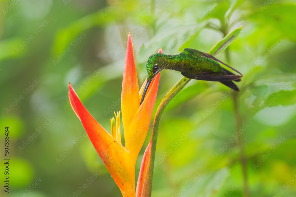 Empress Brilliant - Heliodoxa imperatrix, beautiful colored hummingbird from western Andean slopes of South America, Amagusa, Ecuador.