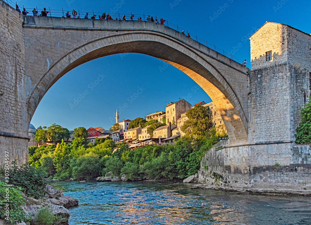 Amazing Mostar Bridge in sunset colors