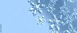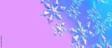 Banner with Clear glass snowflakes in neon light on gradient pink and blue background. Minimal christmas concept. Open composition. Copy space.